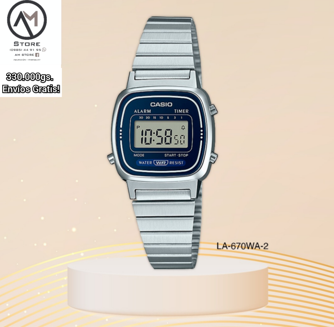 El reloj Casio LA670WA-2DF es un clásico dorado con un diseño retro muy popular. Aquí tienes sus características y medidas: